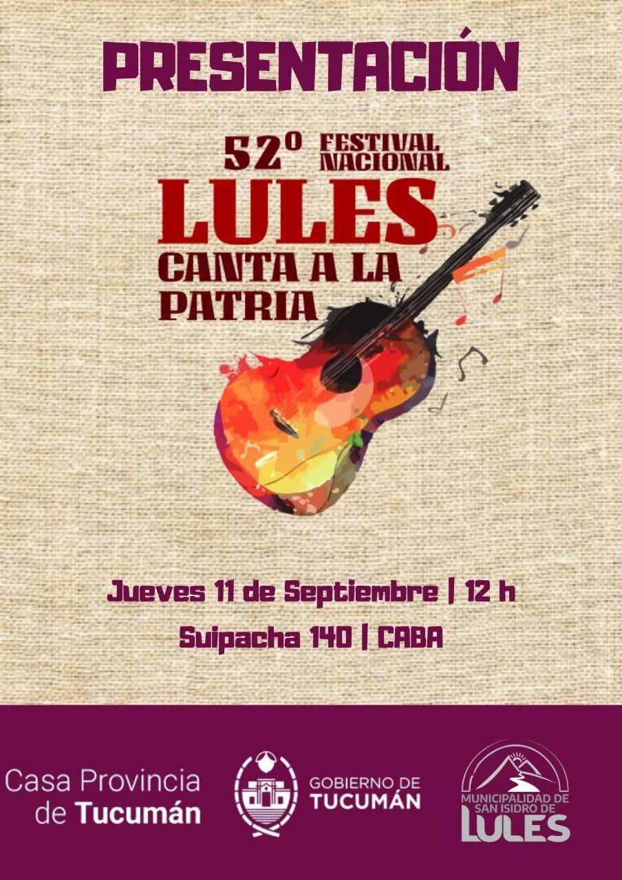 Se anuncia con entusiasmo la edición 52 del Festival “Lules Canta a la Patria”, que se realizará en Buenos Aires, calle Suipacha 140. El evento reunirá artistas, músicos y vecinos en un homenaje a nue