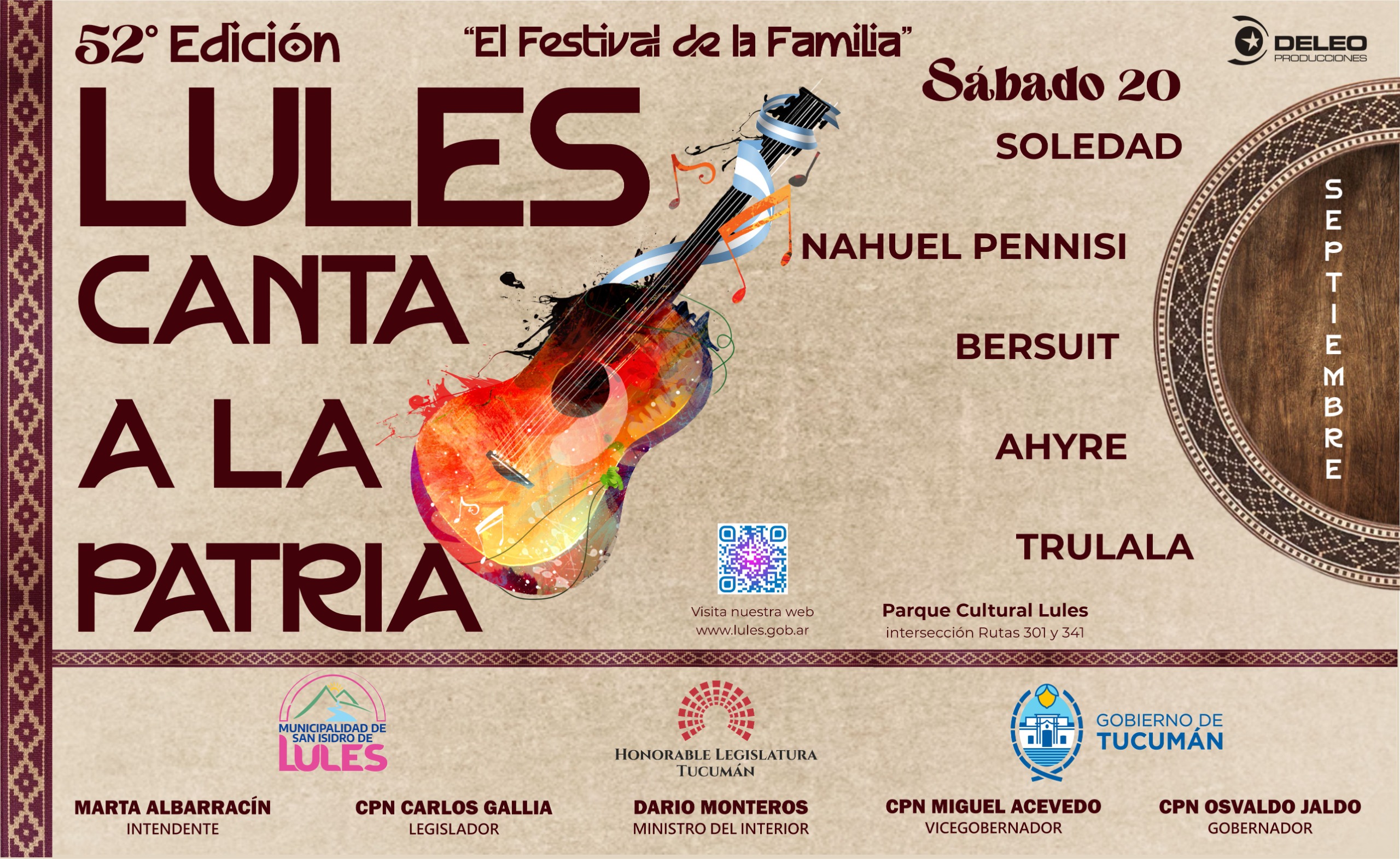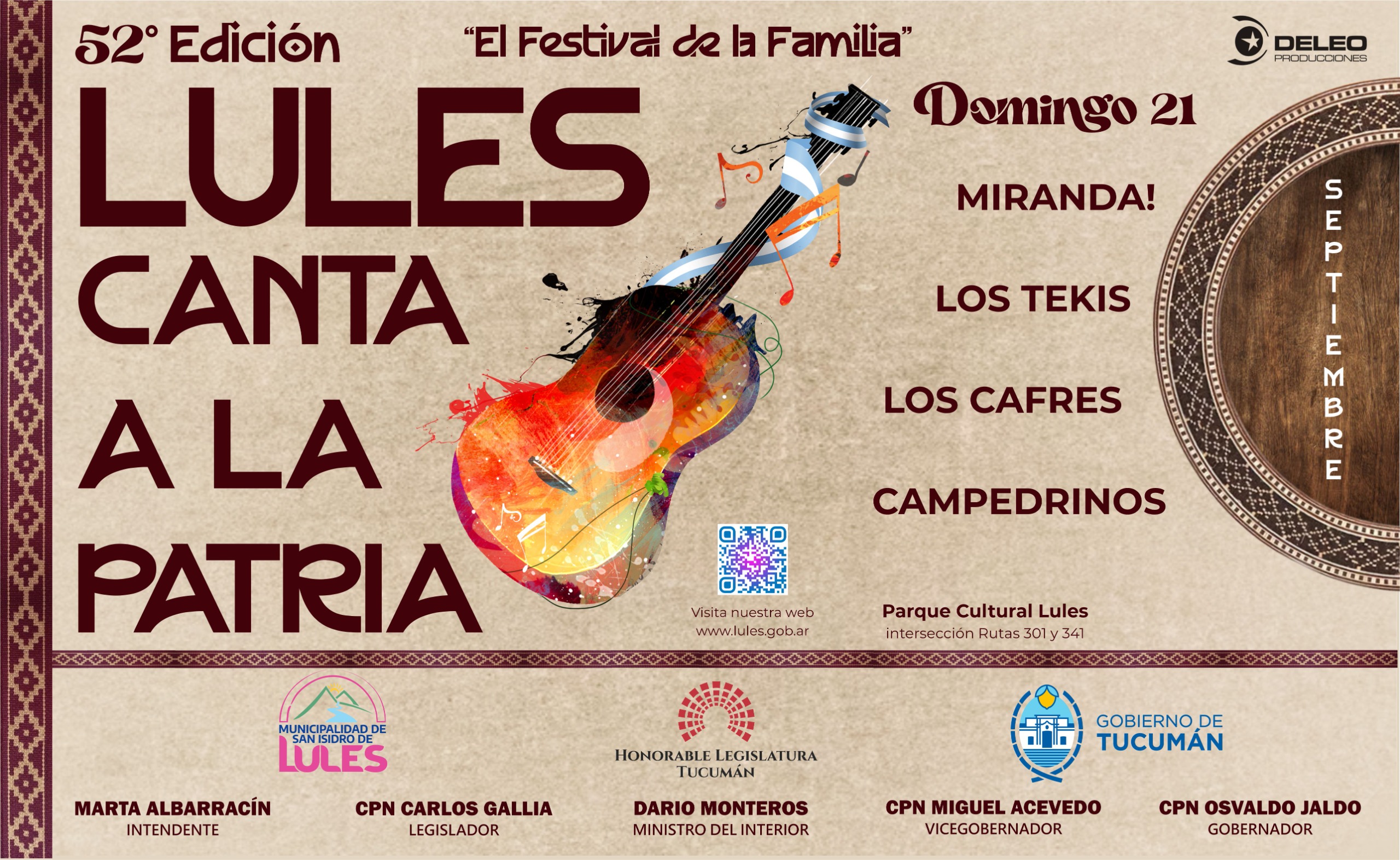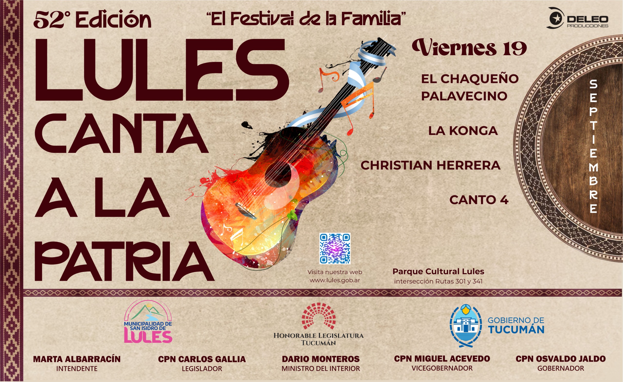 El 52° Festival Lules Canta a la Patria será una fiesta inolvidable, donde cada canción y cada baile reafirmarán que nuestra ciudad es sinónimo de cultura, encuentro y familia.